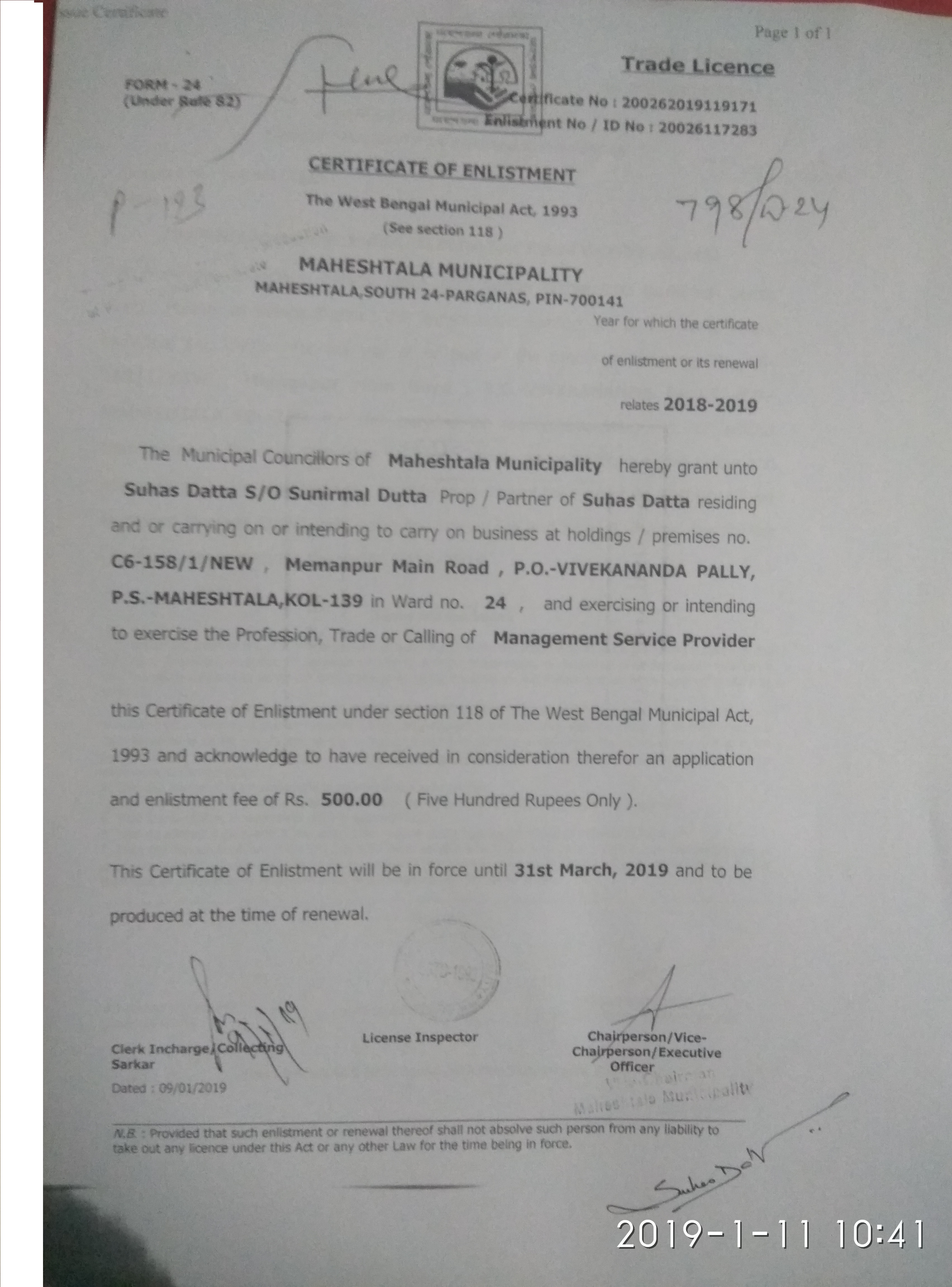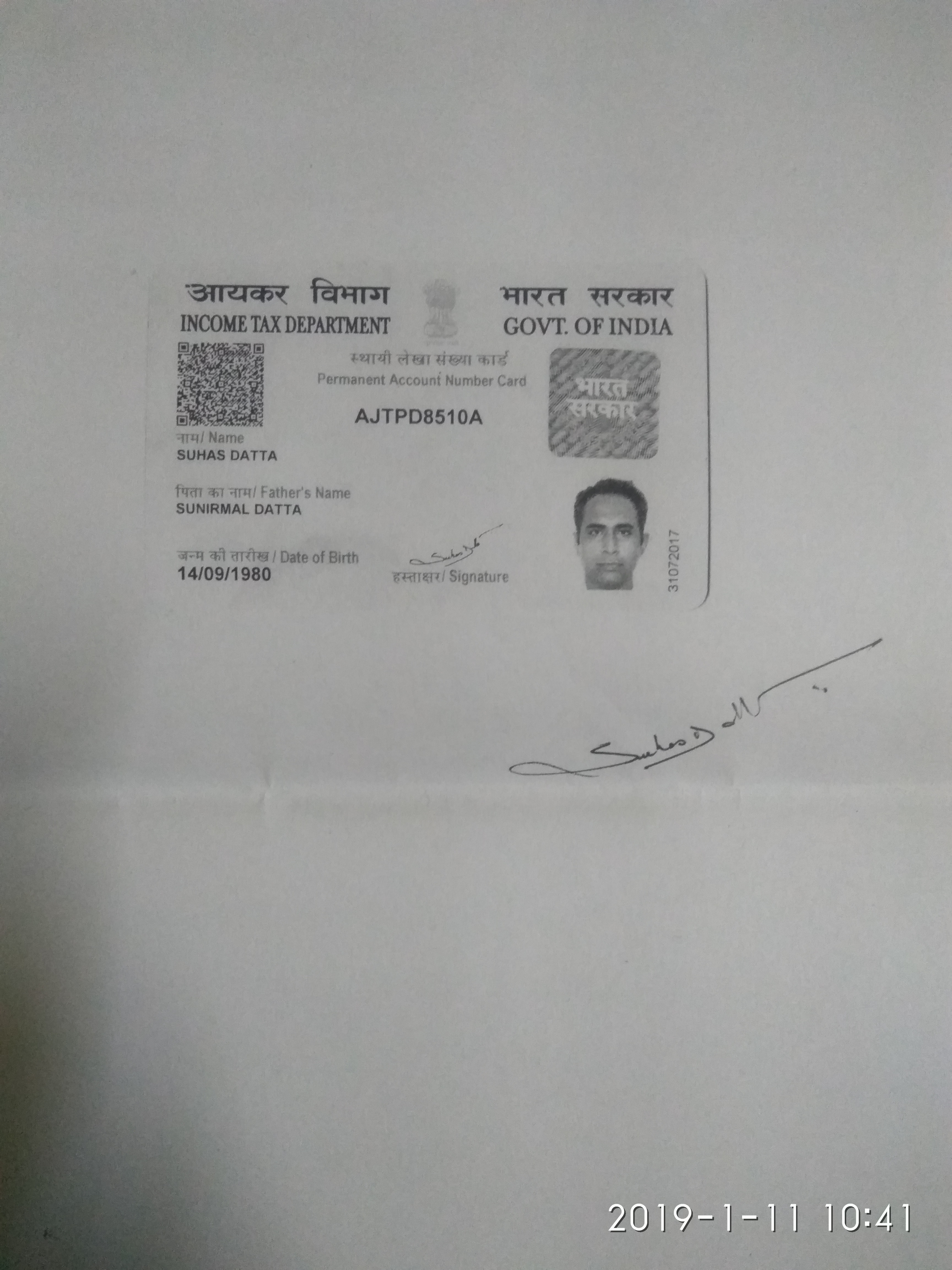 Father's Name: SUNIRMAL DUTTA