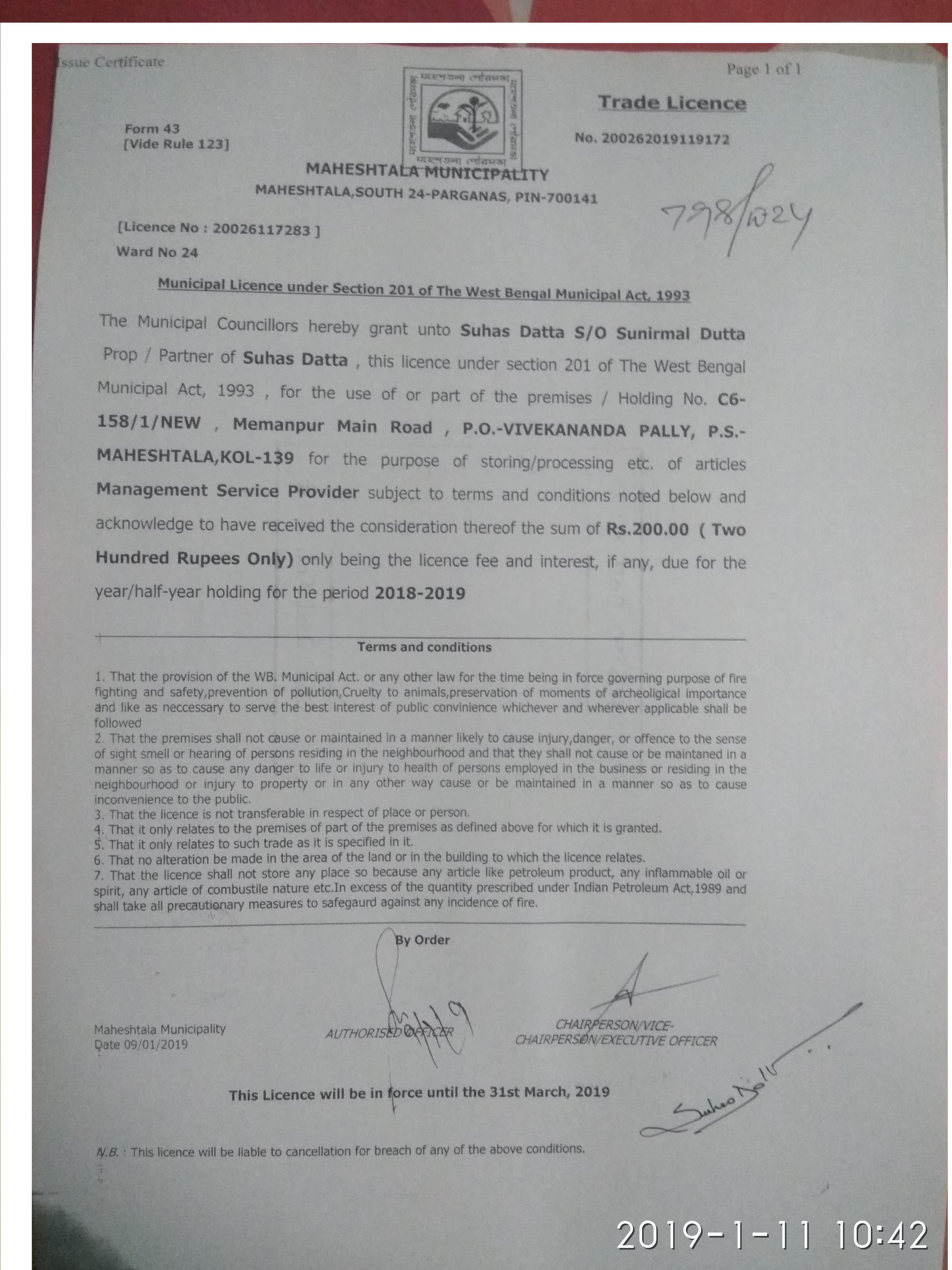 Block/Municipality: NA District: South 24-Parganas Pincode: 700139