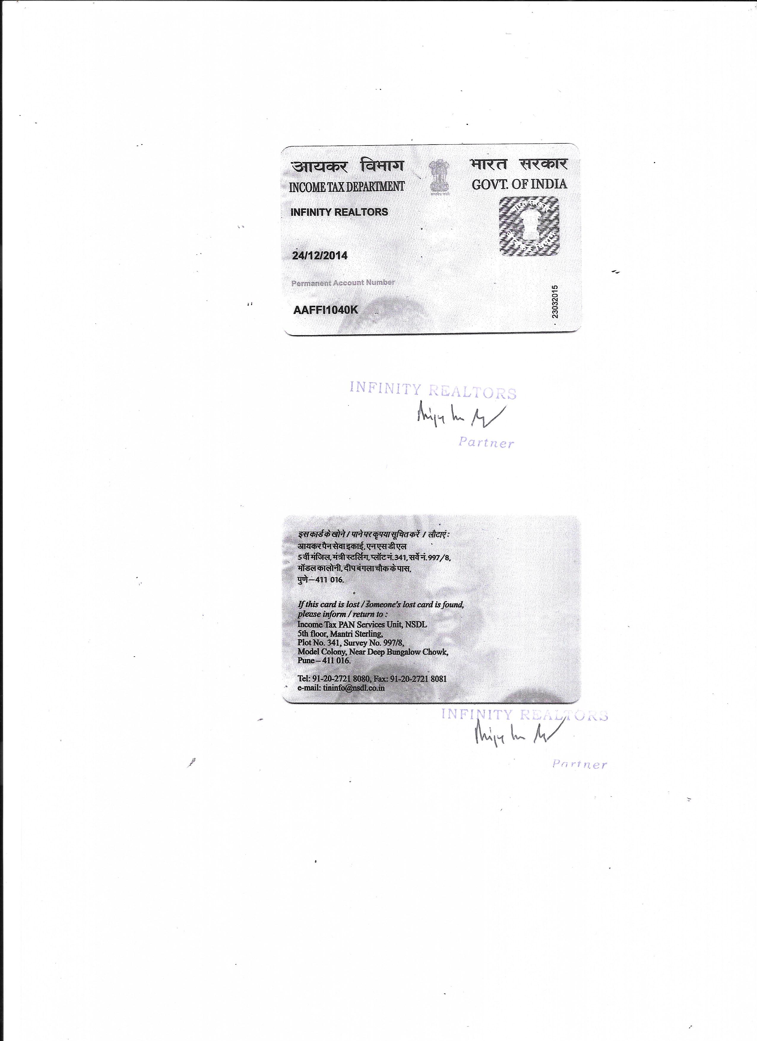 Authenticated copy of the PAN card;