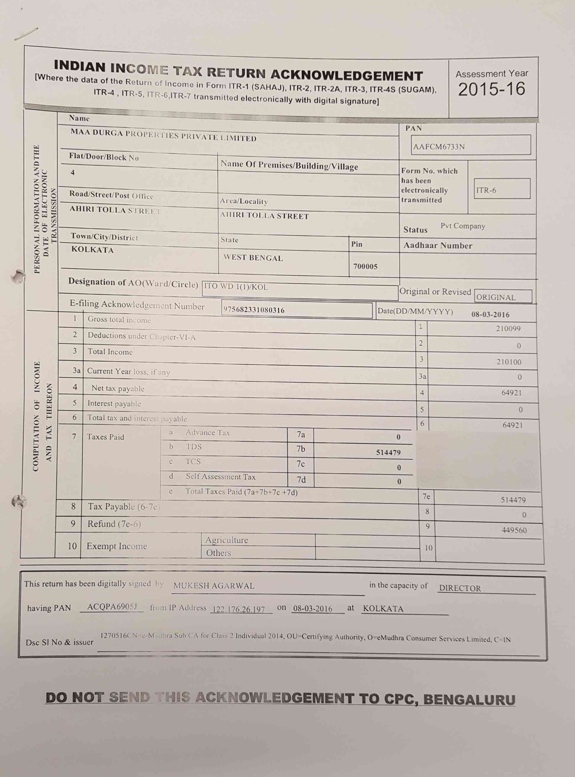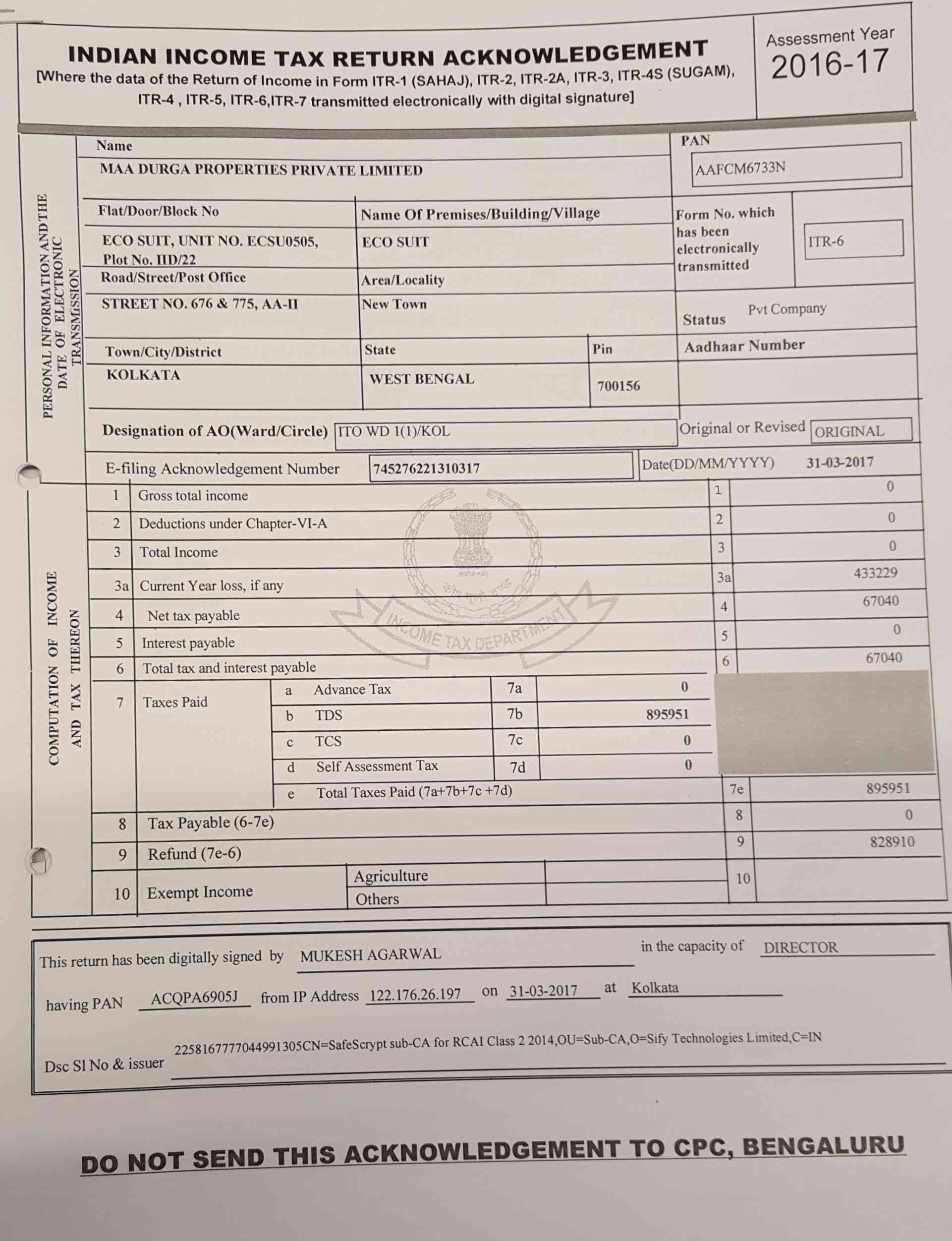 | 1 | MUKESH AGARWAL | Director | 02187788 | PS MAGNUM, FLAT-5A, BLOCK-8, VIP ROAD, KAIKHALI, RAJARHAT GOPALPUR (M), NORTH 24 PARGANAS, KOLKATA- 700052 |