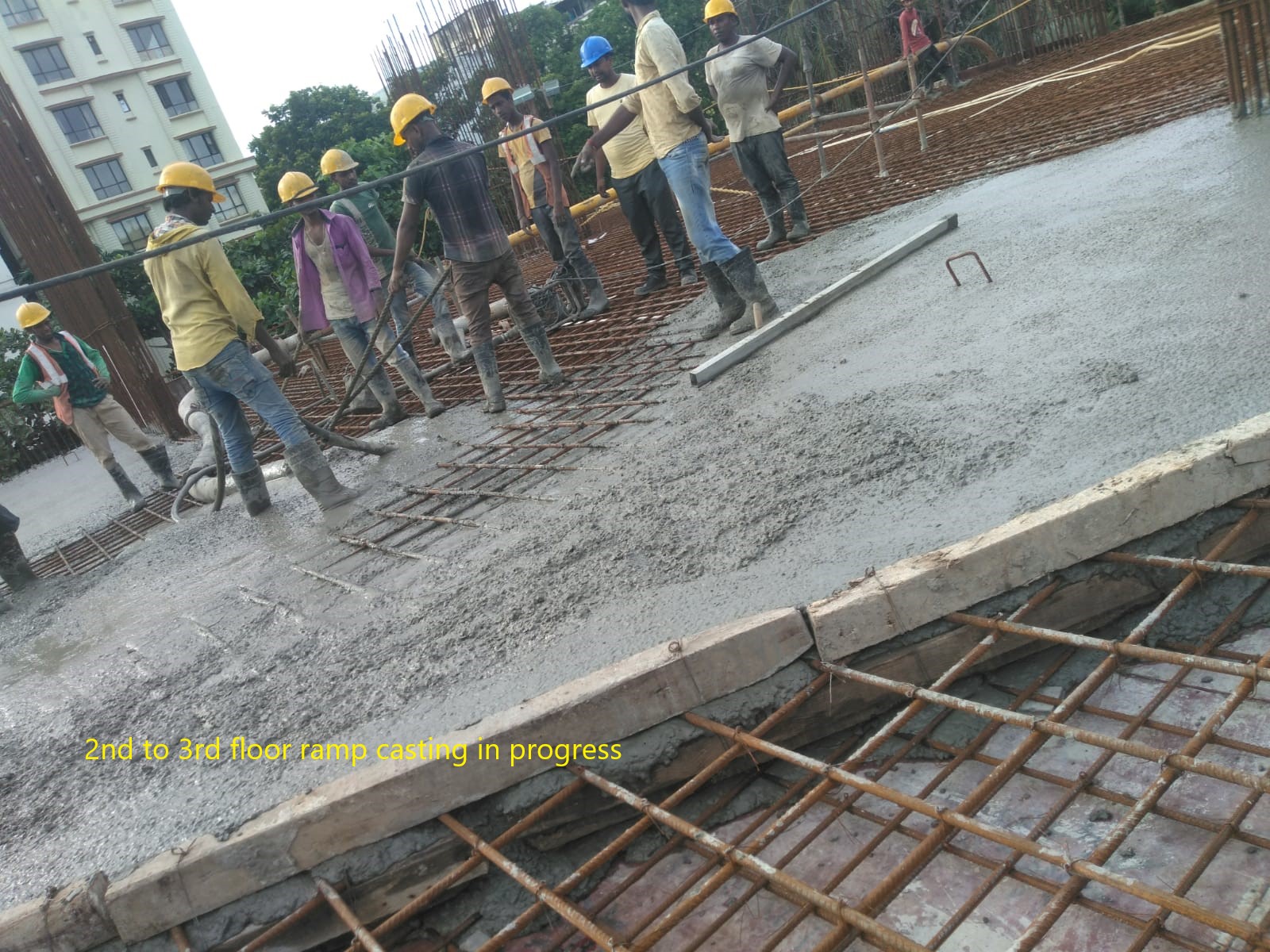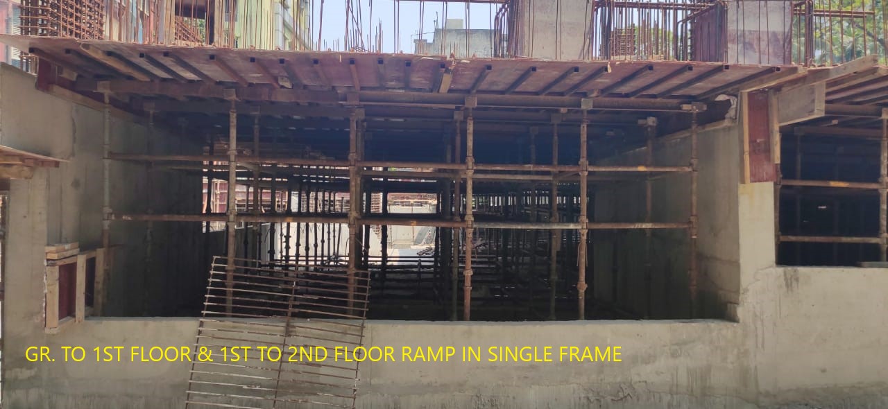 ground to 1st floor ramp casting in progress |
